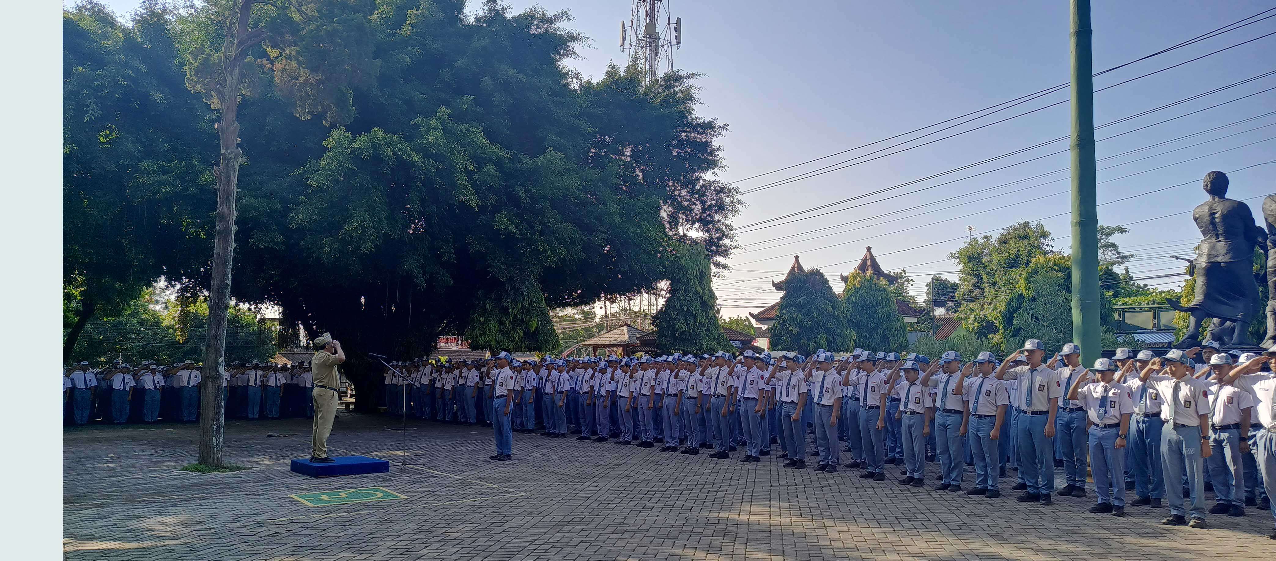 Apel pagi, 1 September 2025. Pembinaan dari TNI/Polri dalam rangka penanaman kedisiplinan dan mematuhi peraturan sekolah.