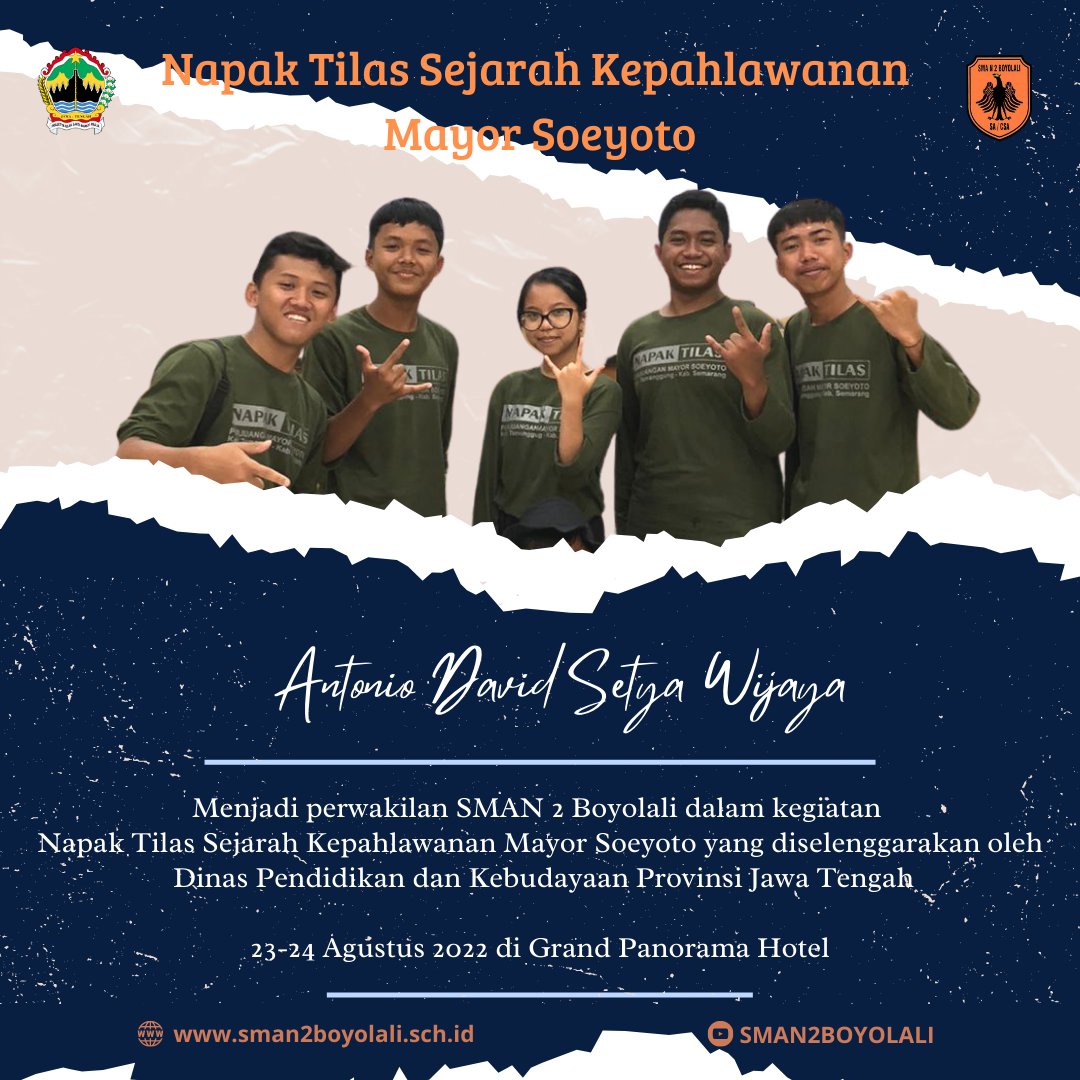 Oleh: Wahyu Sulistyaningsih, S.PdAntonio David Setya Wijaya, siswa kelas XII IPS 4 mewakili #sman2boyolali dalam kegiatan Napak Tilas Sejarah Kepahlaw...